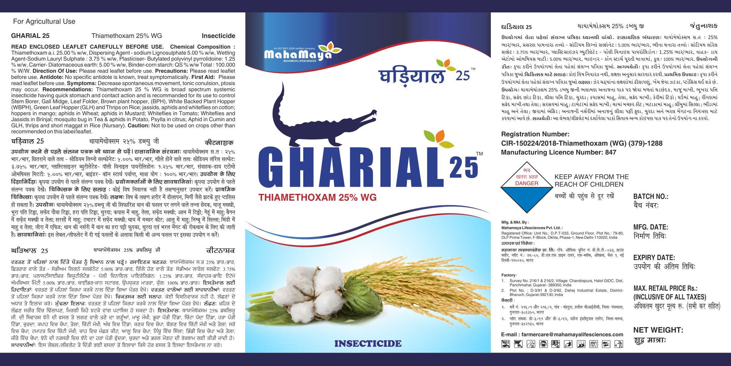 GHARIAL 25 is safe to environment in comparison to other insecticides because of its smaller dose per acre.