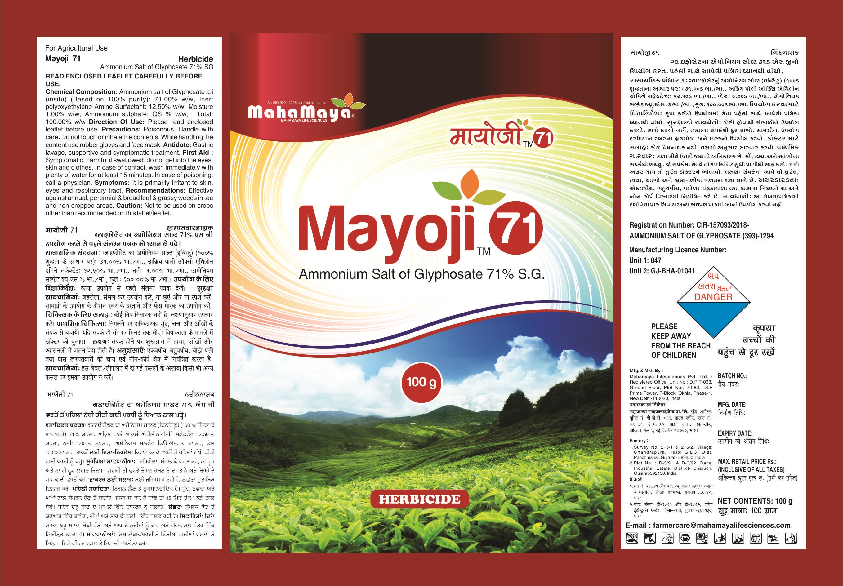 MAYOJI 71 does not have any residual effect on the germination of any crop grown after its application.